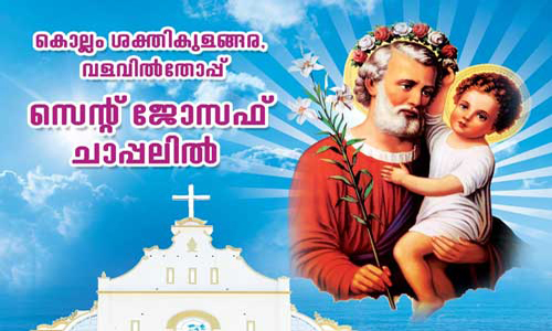 കൊല്ലം ശക്തികുളങ്ങര വളവിൽത്തോപ്പ് സെന്റ് ജോസഫ് ചാപ്പലിൽ 2023 മാർച്ച് 18, 19, 20 (ശനി, ഞായർ, തിങ്കൾ) വിശുദ്ധ യൗസേപ്പ് പിതാവിൻറെ തിരുനാൾ